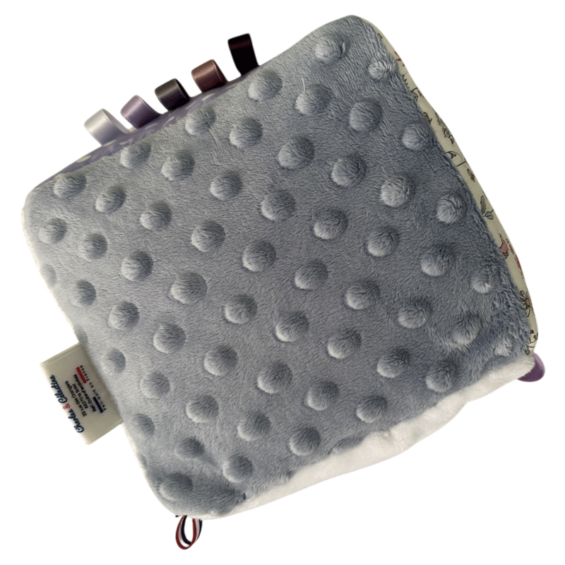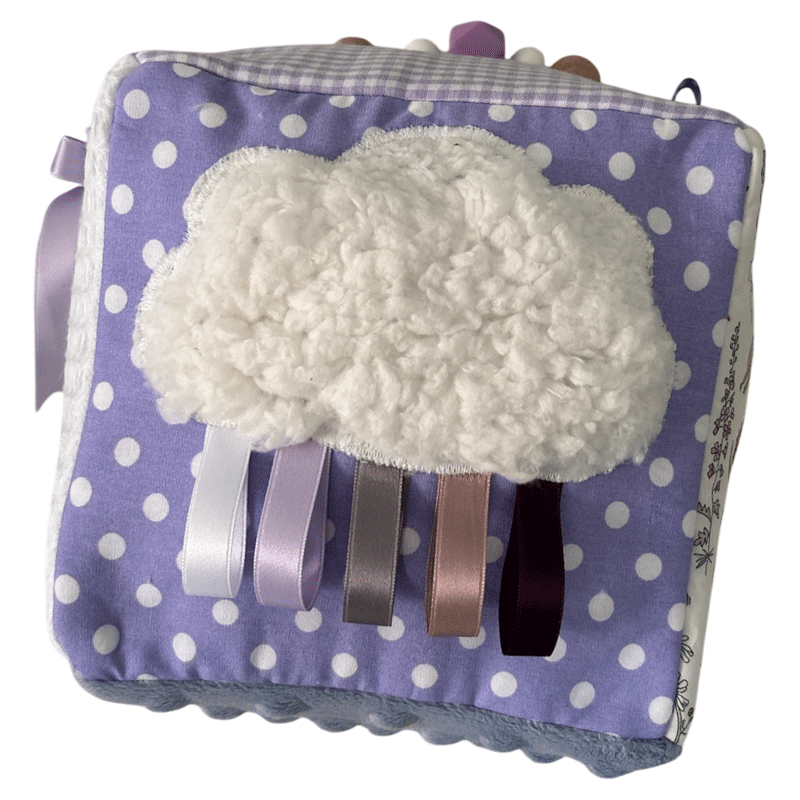 - Développement pour sa motricité : Les différentes textures du cube d’éveil avec activités (rubans de satin, perles de silicone), les couleurs douces dans les tons lilas et les grelots stimulent la vue, le toucher et l’ouïe de bébé.