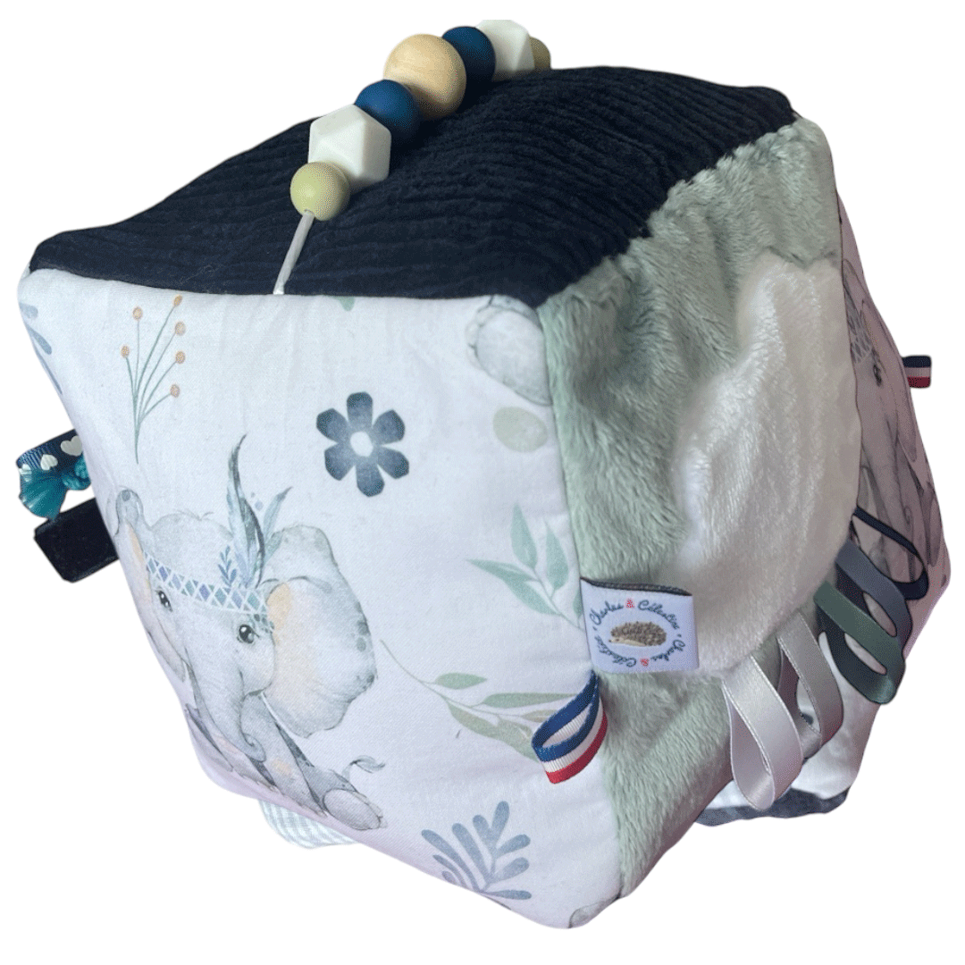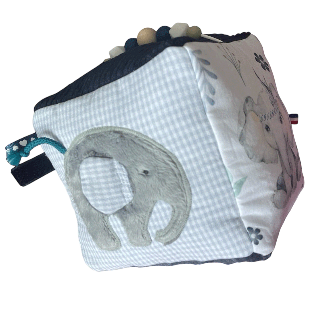 Cube d’activités sensorielles pour bébé – Les éléphants
